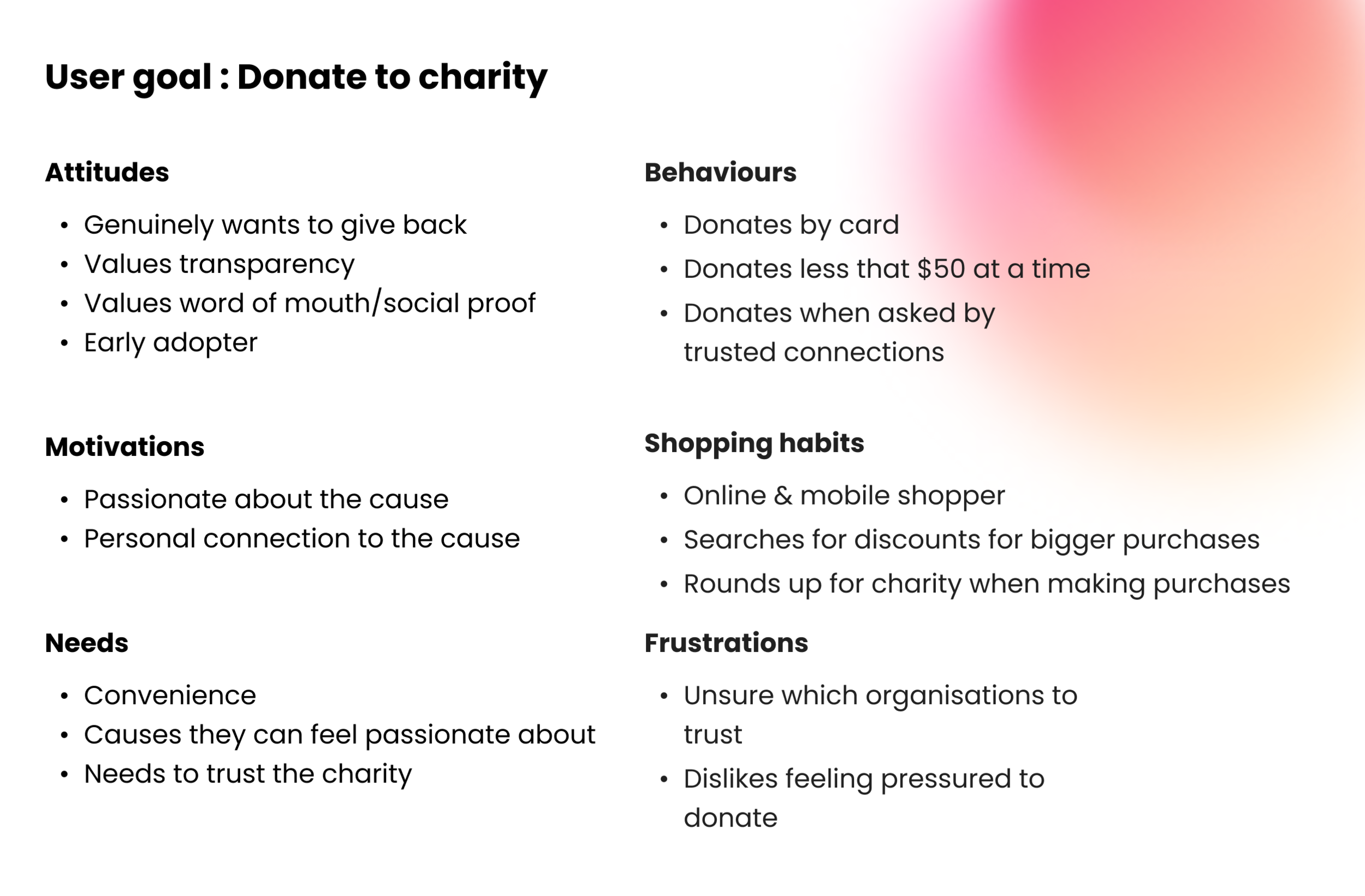 Participants highly value transparency and visibility on impact. However, they will choose to donate to causes where they have personal connections or passions.