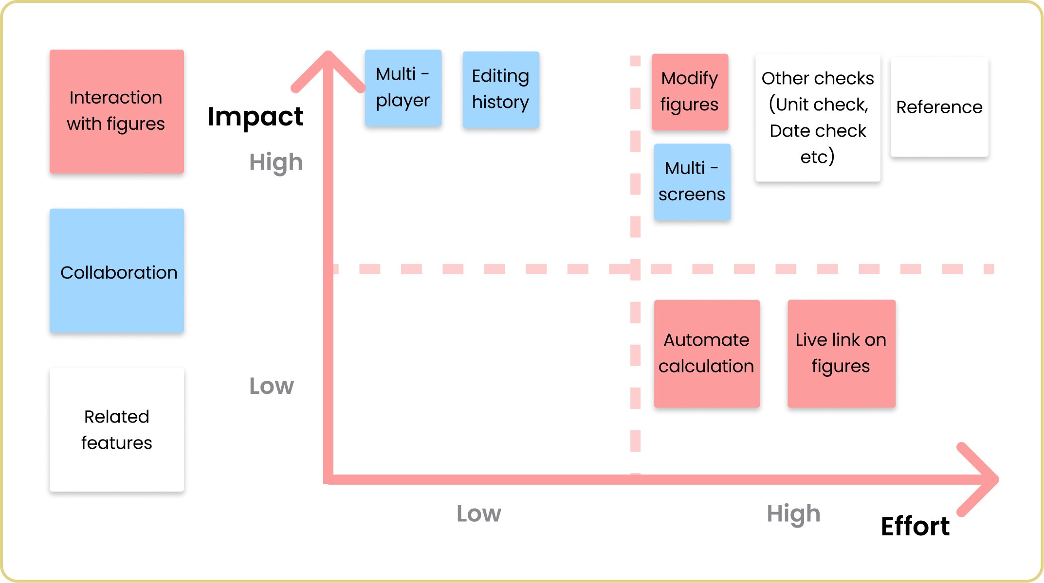 We prioritized ideas based on effort and business impact, postponing related features for future development to maintain focus and manage scope.