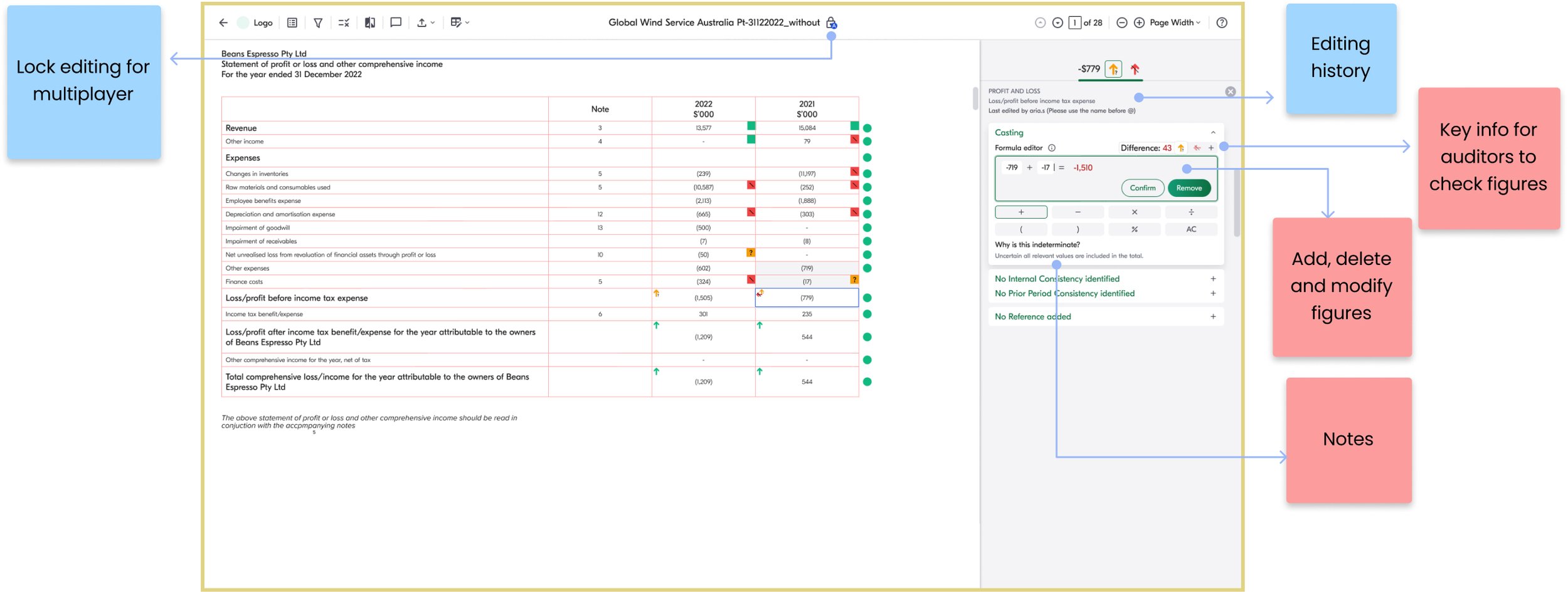 To address the problem, we decided to enable auditors to modify financial statements and collaborate with reviewers on a single platform.