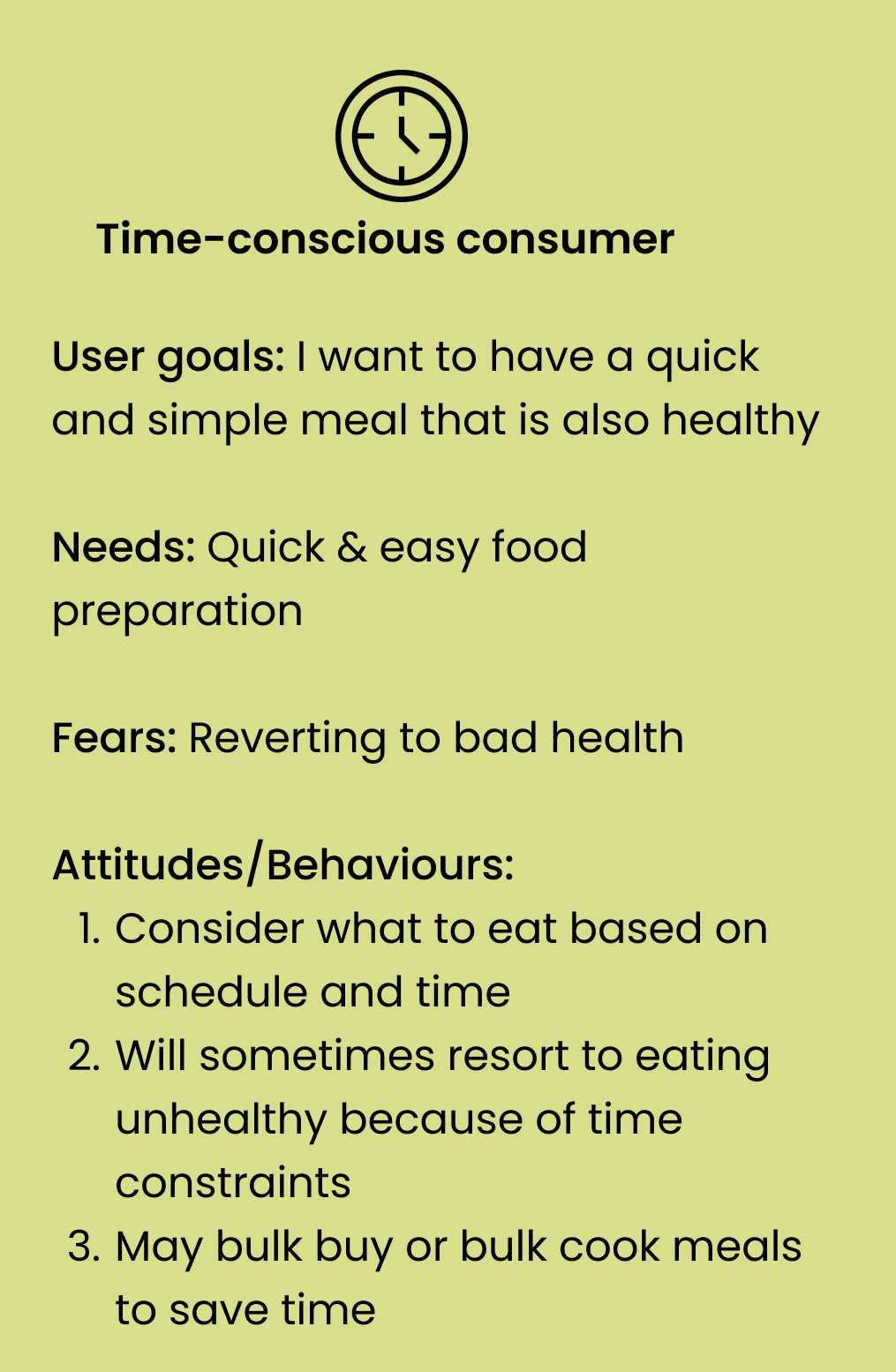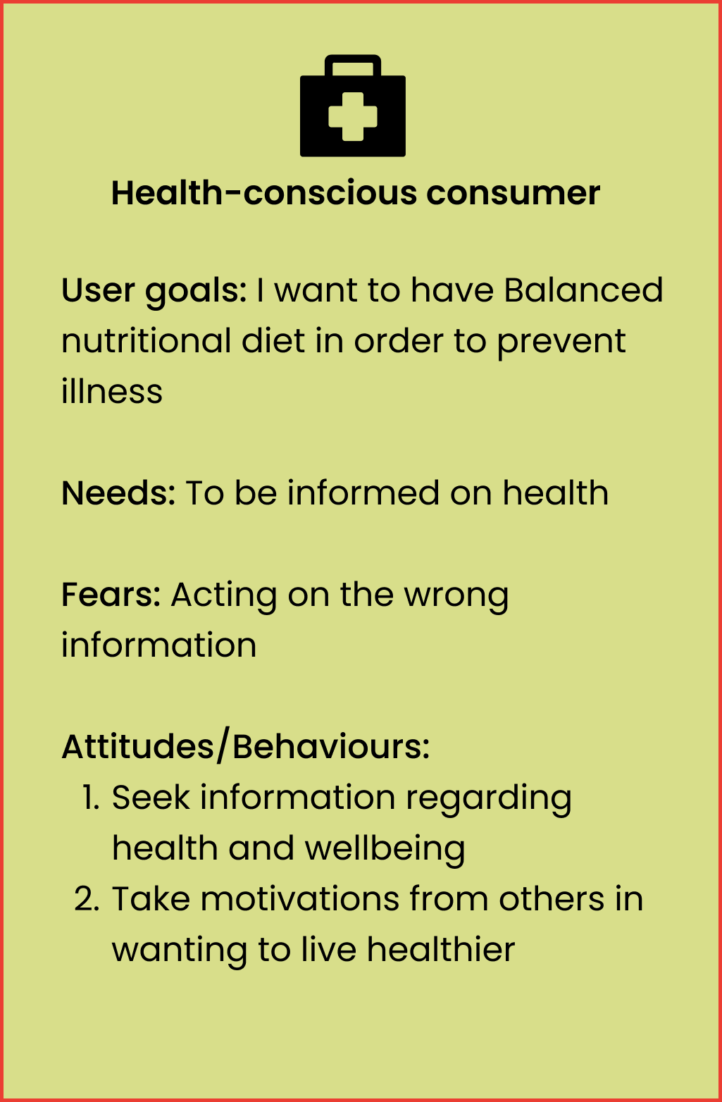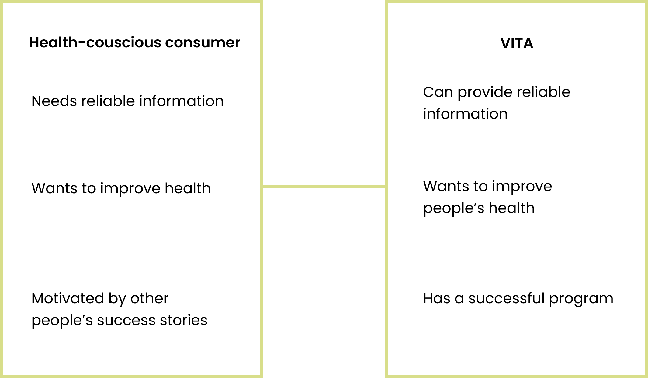 We chose to focus on Health-conscious consumer in this sprint because they are actively seeking resources for healthy eating and this aligned with VITA’s goal of helping people eat better.