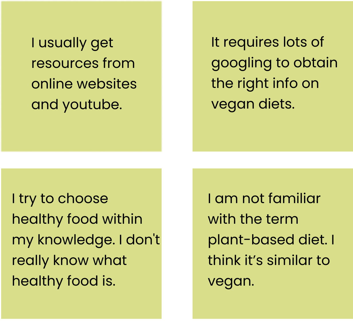 They search for resources from different places, especially on digital platforms, but they still don’t know what a plant-based diet is.