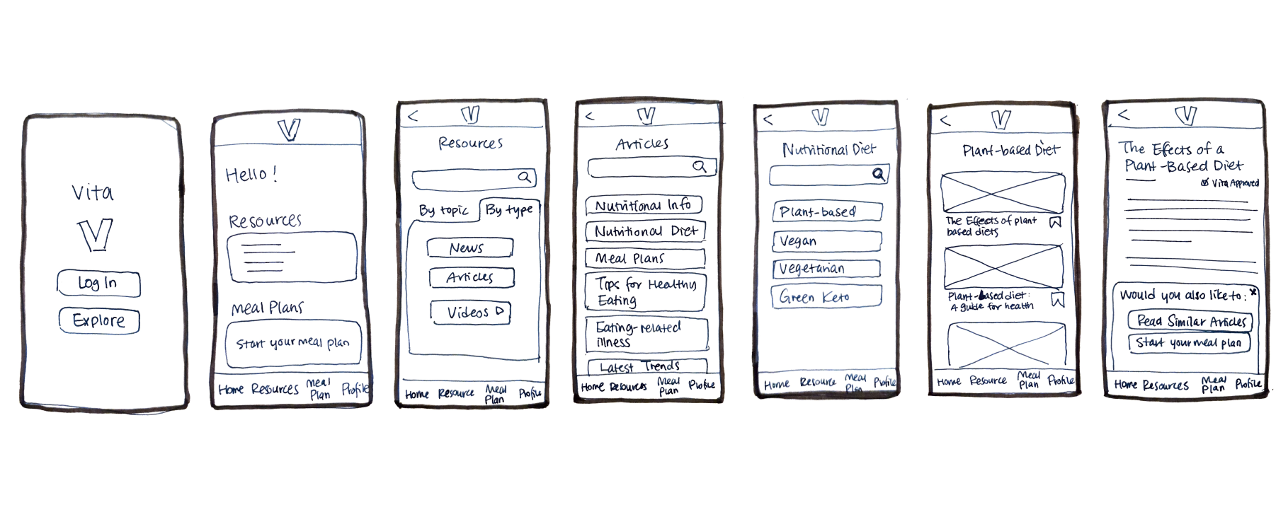 Mid-fi prototype: Incorporating users’ feedbacks and Vita’s Unique Selling Point into mid-fidelity wireframes: